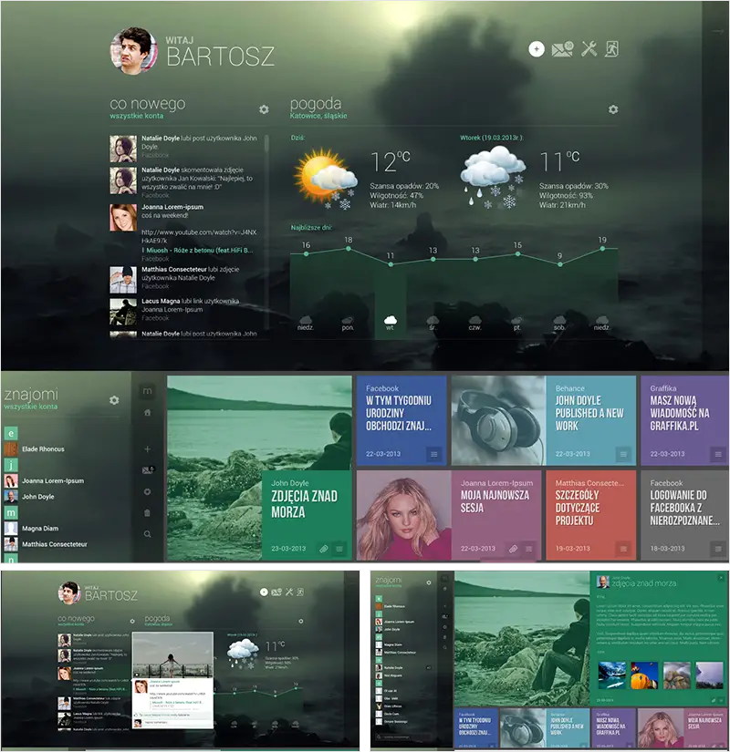 The page is mainly in dark gray tones, with different color combinations, as if telling different stories. The layout of the white text makes the whole page look thick and delicate, and the slight gradient in the small area increases the texture of the page.