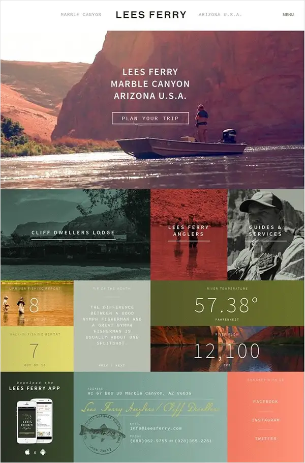 The clear tone makes the page very harmonious, even if the color matching of different hues and the same tone can keep the page in a high degree of coordination. Blue also creates a quiet and cold atmosphere on the page, and brown reminds us of the thickness of the earth’s soil, adding a sense of stability and solidity to the page, while warming the coldness of blue.