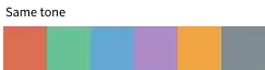 This is a type of color matching that consists of hue changes in the same or similar hues, and is the same technique as in dominant color matching. The difference is that the tones are evenly distributed, there are no modules that are too dark or too light, and the tonal range is tighter.