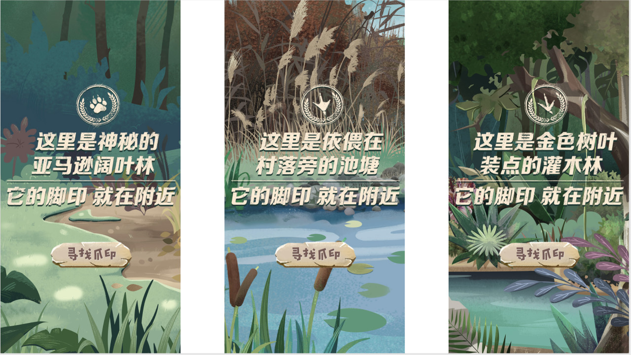 By looking for hidden animal footprints, the information about endangered animals is conveyed to users step by step.So that people can better understand the behavior of cute animals and build cognition and promote affection.