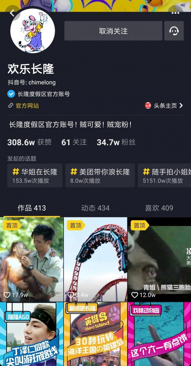 Up to now, chimelong’s official account of douyin has 34.7 million fans and accumulated 308.6 million likes. The brand can help users better understand the brand through vlog.
