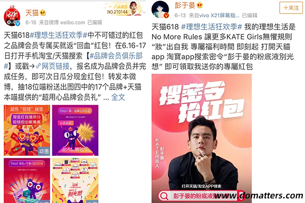 This year, 618, Tmall on the first preheat weibo, in the form of “return blood red envelope” cash raffle, changed the single form of one-click red envelope draw, blog + picture + official blog design, greatly improve the core topic of 618 reading and interactive degree.For example, as of June 19, Tmall 618# ideal life carnival season, the number of reading and discussion on weibo has exceeded 5.2 billion and 14.5 million, which has accumulated amazing exposure.